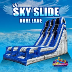 Ready, set, SLIDE! Book the 24' Dual Lane Sky Slide today—dates go fast.